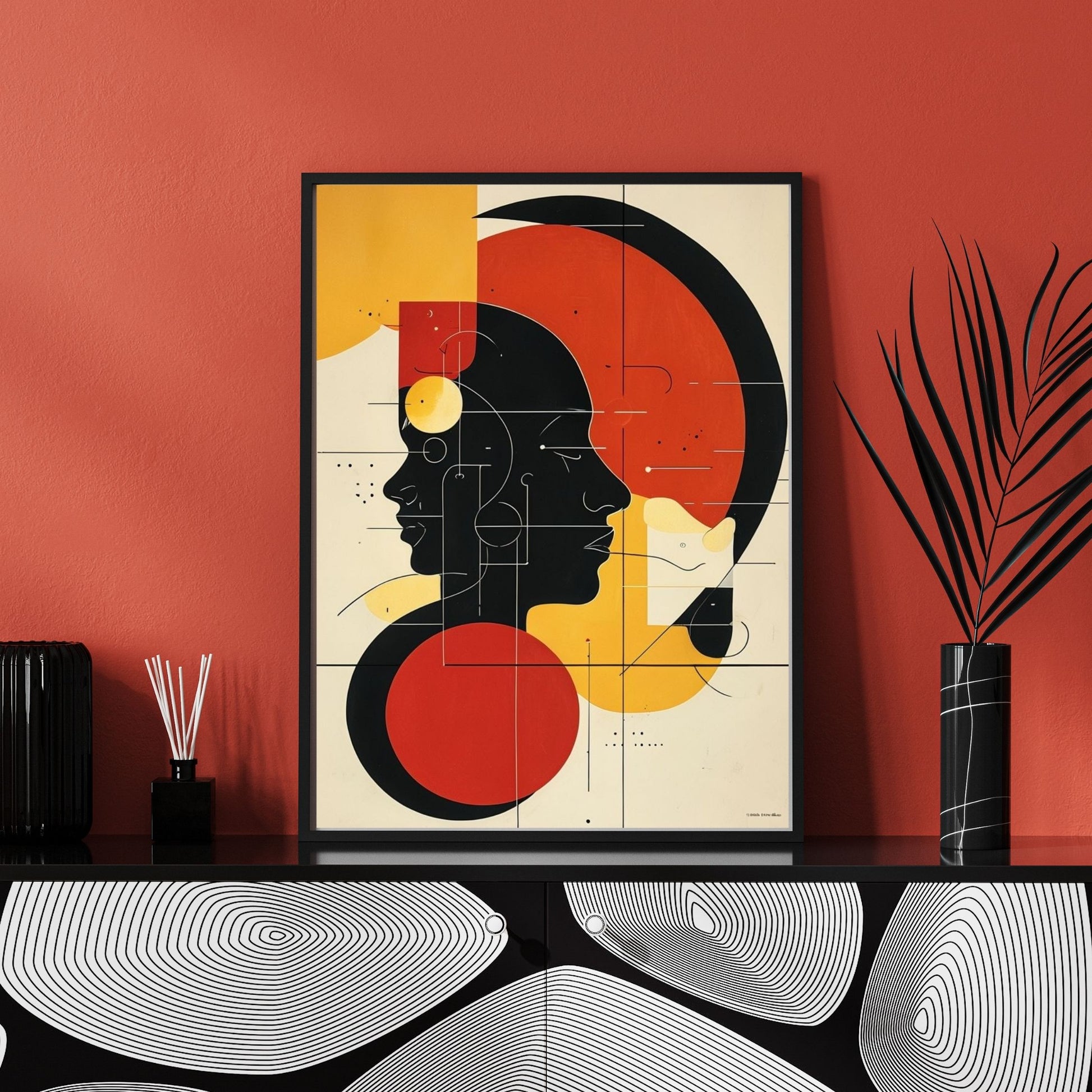 - The framed canvases with brown and black frames have a black inside around the canvas, and the canvases with white frames have a white inside around the canvas.